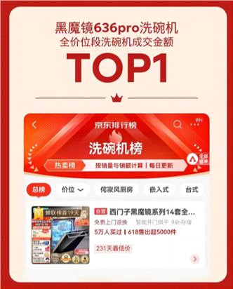 京東銷量冠軍:智能洗烘實力派,西門子黑魔鏡洗碗機