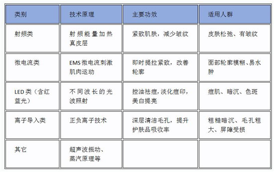 目前,市場上的美容儀產(chǎn)品主要分為五類,分別是:射頻、微電流、LED、離子導(dǎo)入和其他。