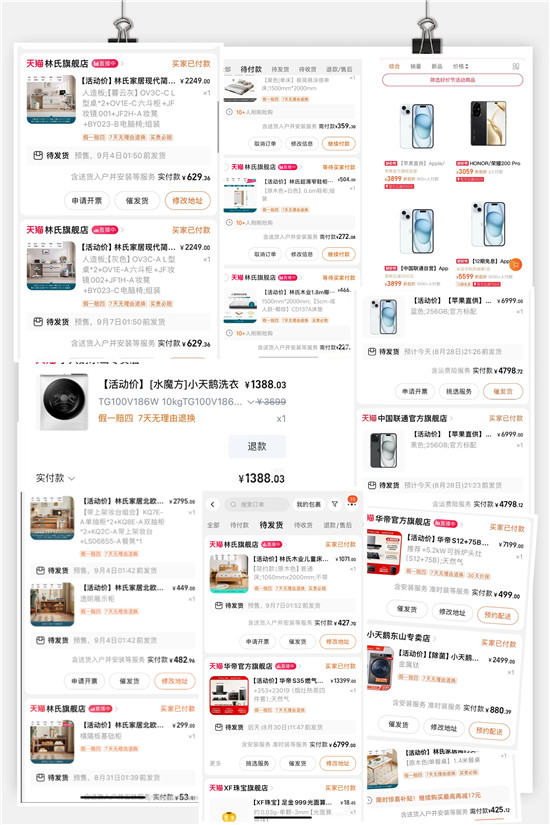 在曬單中,包括但不限于華帝、小天鵝、林氏木業(yè)、創(chuàng)維、聯(lián)通渠道的蘋果和部分黃金飾品。