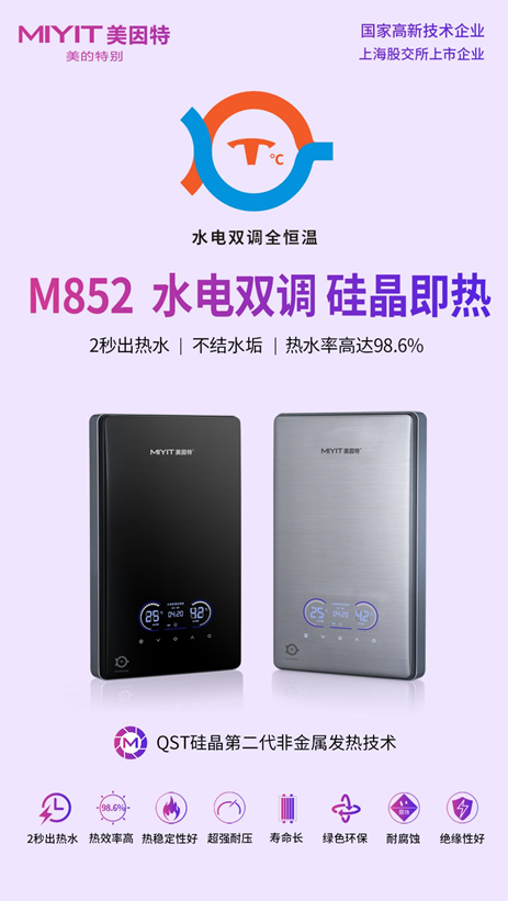 作為水電雙調(diào)全恒溫的旗艦機(jī)型,M852從產(chǎn)品核心功能來看,其加熱速度、熱效率、出水水質(zhì)、恒溫效果等綜合指標(biāo)表現(xiàn)突出,因?yàn)椴唤Y(jié)水垢,水質(zhì)差的地區(qū)也能使用,產(chǎn)品適用范圍廣。