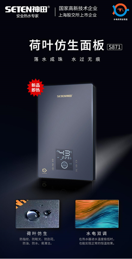 2023年,神田集團(tuán)推出了高端旗艦產(chǎn)品S851.采用神田一號(hào)QST硅晶非金屬發(fā)熱技術(shù),水電分離,不結(jié)水垢,2秒出熱水,熱效率高達(dá)98.6%。