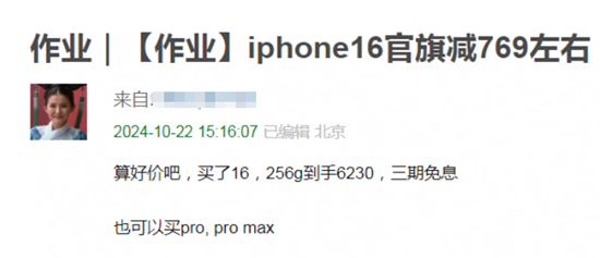 當(dāng)然,一些薅羊毛平臺(tái)對(duì)于價(jià)格更加敏感。平臺(tái)開始頻繁有人詢問:“今年蘋果不會(huì)再跳水了吧?”然而,他們往往得到的答案并不如自己所愿。反而有網(wǎng)友調(diào)侃道:“我記得去年雙11蘋果15直接到4800了都!辈糠至(xí)慣于低價(jià)購(gòu)入后出貨的朋友,更是直言:不碰了,沒利潤(rùn)。