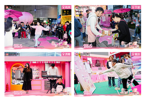 櫻你而來,生活處處是風(fēng)景,SAKURA櫻花將在杭州、寧波、濟(jì)南、臨汾、蘇州、上海、鄭州、南陽等全國16座城市打造自在生活城市站,營造城市街頭的閑趣空間。來自各大社交媒體平臺(tái)的熱榜達(dá)人傾情助陣,帶來精彩紛呈的才藝表演和直播現(xiàn)場,增添別樣的魅力與趣味?梢栽谛鷩讨型O履_步,品嘗精心準(zhǔn)備的櫻花味道,在熱氣球旁打卡,挑戰(zhàn)櫻花繽紛的喜悅,套出有求必櫻的祝福,收獲趣味櫻花印章,兌換定制周邊,體驗(yàn)這個(gè)季節(jié)獨(dú)有的幸運(yùn)與歡樂。