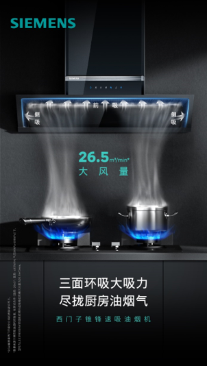 在核心技術方面,西門子錐鋒300速吸油煙機搭載了德系強排變頻電機,以高效的吸力和靜音性能滿足了用戶對廚房清潔與使用舒適性的雙重需求。產品具有26.5m³/min的大風量以及高達1300Pa的風壓,即使是在需要強力排煙的情況下,也能保證穩(wěn)定、持久的吸排效果。這一性能尤其適合高層建筑廚房用戶,無論樓層高度或油煙管道的排放難度,西門子錐鋒300速吸油煙機均能迅速將油煙排出,創(chuàng)造無油煙困擾的清新空間。