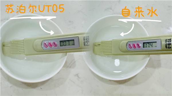 對(duì)于消費(fèi)者而言,使用TDS測(cè)水筆是檢測(cè)水質(zhì)的一種簡(jiǎn)便方法。TDS值反映溶解性固體總量,值越低表示水中雜質(zhì)越少,水質(zhì)更健康。經(jīng)過測(cè)試顯示,蘇泊爾的TDS值為7,自來水(測(cè)試自來水水源為長(zhǎng)江水)TDS值為174,從TDS角度看,臺(tái)式凈飲機(jī)UT05所制純水完全符合直飲標(biāo)準(zhǔn)。