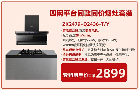 為契合京東下沉渠道,櫻雪特推出極致性價(jià)比的兩款煙灶套餐,包括京東電商、抖音直播、京東下沉渠道、線下傳統(tǒng)渠道四平臺(tái)同款同價(jià)銷售——2899元智能變頻煙灶套餐(28m³/min風(fēng)量,1200pa風(fēng)壓直流變頻煙機(jī)ZK2479搭配64%熱效率、5.2kW火力、全進(jìn)風(fēng)設(shè)計(jì),雙邊定時(shí)灶具Q2436-T/Y);以及爆款引流煙灶套餐(20m³/min吸力和揮手智控吸油煙機(jī)C2313(B)SW搭配5.0kW火力灶具Q2310SW-T/Y)。