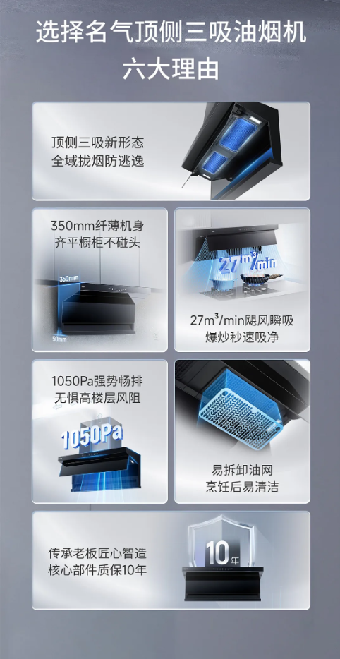 新品速遞 | MQ名氣首款頂側(cè)三吸變頻油煙機(jī)5Q81上市啦
