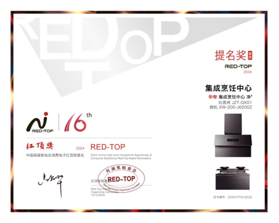 正是因為在科技創(chuàng)新、產品品質、用戶體驗和品牌向善等方面的卓越表現(xiàn),華帝贏得了廣大消費者的認可和信賴。其不僅連續(xù)多年蟬聯(lián)中國廚電市場領先地位,還多次榮獲國內外知名獎項,此次榮獲紅頂獎,再次證明了華帝在廚電行業(yè)的領先地位和創(chuàng)新能力。