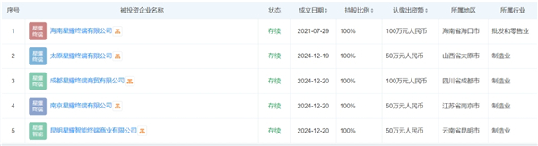 深圳星耀終端有限公司自2021年7月20日成立以來(lái),便承載著榮耀商業(yè)版圖中的銷(xiāo)售重任。成立不到十日,即于7月29日通過(guò)100%持股方式設(shè)立了海南星耀終端有限公司。截至目前,海南星耀終端公司已在全國(guó)設(shè)立了26家分公司,遍布大部分省份及直轄市,展現(xiàn)了其快速的市場(chǎng)拓展能力。