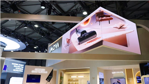 MOVA展區(qū)洗地機(jī)區(qū)域還設(shè)置了一個(gè)L型的瀑布屏,可以通過(guò)pad的操控來(lái)進(jìn)行產(chǎn)品功能的演示,把技術(shù)創(chuàng)新更顯性化的表現(xiàn)了出來(lái),現(xiàn)場(chǎng)受到了許多觀眾的關(guān)注。同時(shí)MOVA還官宣了與時(shí)尚芭莎的合作,讓洗地機(jī)化身為空間裝置,與日常生活中的時(shí)尚配飾”組裝“在一起,更有一種先鋒者的姿態(tài),探展過(guò)程中更像是躍入了一場(chǎng)生活的秀場(chǎng)。