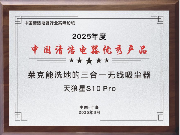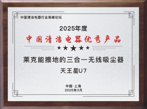 萊克電氣作為清潔電器行業(yè)的代表,憑借卓越的品牌實力和創(chuàng)新的產(chǎn)品技術(shù),連續(xù)三年榮膺“中國清潔電器領(lǐng)軍企業(yè)”稱號。同時,萊克天狼星S10 Pro能洗地的三合一無線吸塵器、萊克天王星U7能擦地的三合一無線吸塵器兩款新品脫穎而出,榮獲“2025年度中國清潔電器優(yōu)秀產(chǎn)品”大獎。