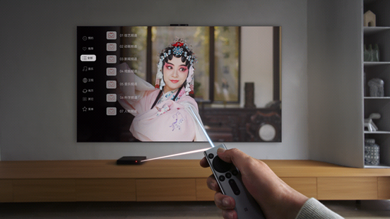 華為靈犀指向遙控可以像激光筆一樣操控,用戶只需輕輕一指,即可精準(zhǔn)點(diǎn)選屏幕圖標(biāo)——刷短視頻滑動(dòng)點(diǎn)贊、點(diǎn)外賣秒速下單,甚至在大屏上玩射擊類游戲,皆可“指哪打哪”,操控體驗(yàn)絲滑無(wú)界。