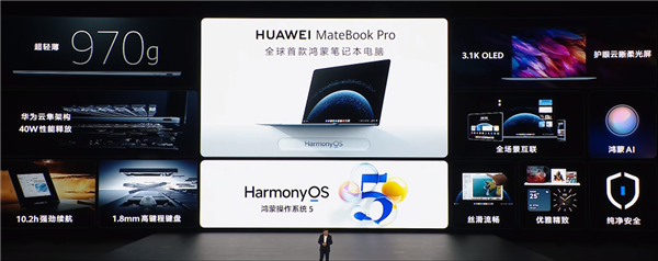 華為還發(fā)布了全球首款鴻蒙筆記本電腦——MateBook Pro。這款筆記本同樣搭載了鴻蒙5操作系統(tǒng),整機重量僅為970克,厚度也控制在了13.5毫米,為用戶提供了更加輕盈的使用感受。MateBook Pro的起售價為7999元,并將與MateBook Fold非凡大師一同在6月6日上市銷售。
