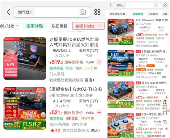 灶具品類同樣延續(xù)超低價(jià),國補(bǔ)之后,方太、老板售價(jià)500元起步,華帝部分產(chǎn)品低至300元,蘇泊爾、櫻雪等品牌更是低至200元。不少產(chǎn)品相較于原價(jià),折扣力度接近2折。值得注意的是,以上所有價(jià)格并不是僅有數(shù)十臺(tái)的秒殺活動(dòng),而是階段性的促銷價(jià)格。