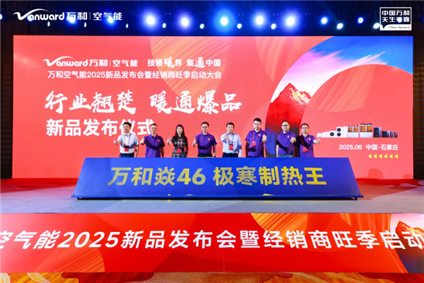 隨后,萬和電氣總裁賴育文攜高管團隊與行業(yè)專家共同啟動新品發(fā)布儀式。當能量矩陣點亮時,現(xiàn)場掌聲雷動——這不僅標志著萬和空氣能2025爆品正式啟航,更象征著中國熱泵行業(yè)從“中國智造”向“全球暖匠”的關(guān)鍵一躍。