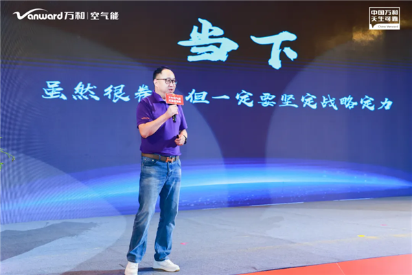 在萬和空氣能2025新品發(fā)布會暨經(jīng)銷商旺季啟動大會的收官環(huán)節(jié),萬和電氣總裁賴育文發(fā)表重磅致辭,為整場大會注入戰(zhàn)略高度與未來視野。賴育文總裁表示,在國家“雙碳”戰(zhàn)略的推動下,空氣能行業(yè)迎來了新的發(fā)展機遇,熱泵正在全球能源轉(zhuǎn)型中扮演著越來越重要的角色。萬和在“121”夢想的基礎(chǔ)上,已經(jīng)進一步明確未來10年“全球熱水采暖多能源解決方案領(lǐng)導者”的戰(zhàn)略目標,以及全球綜合能源管理科技公司的愿景。因此將堅定投入空氣能,堅定采暖熱水主業(yè),深度參與中國能源結(jié)構(gòu)轉(zhuǎn)型,建立全場景服務矩陣。