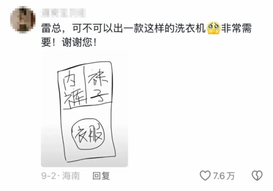 多筒洗衣機(jī)的走紅,本質(zhì)上源于消費(fèi)者對健康洗護(hù)需求的持續(xù)高漲。2024年9月,網(wǎng)絡(luò)上曾掀起一股“許愿三筒洗衣機(jī)”的熱潮,一位網(wǎng)友手繪的多筒洗衣機(jī)草圖短時(shí)間內(nèi)就收獲了7.6萬點(diǎn)贊,直觀展現(xiàn)了用戶對分區(qū)洗滌的迫切期待。盡管小米隨后推出的雙筒洗衣機(jī)未能完全滿足這一需求,但這場自發(fā)的用戶呼聲,讓行業(yè)清晰捕捉到了潛在的市場機(jī)會。