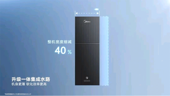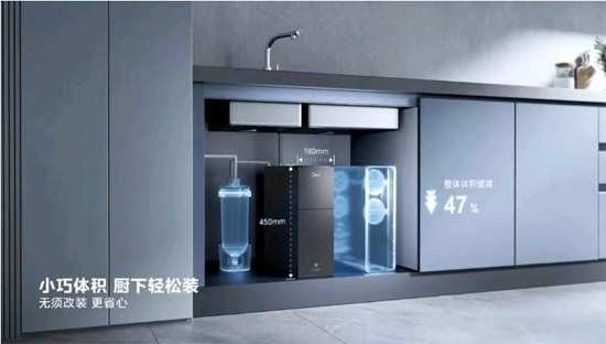 傳統(tǒng)軟水機通常高度超過500mm,寬度達200mm以上,安裝時往往需要切割櫥柜、調整水電布局,甚至鑿穿踢腳線,極大限制了中小戶型家庭的使用。而美的“廚下軟水大師”通過超小型多功能雙罐多路控制閥、一體化免焊接并聯(lián)雙罐制水、三維流動減阻盤式布水三大核心技術突破,實現(xiàn)體積縮減47%,整機尺寸僅450×440×160mm³,相當于兩臺平板電腦的高度和一部手機的寬度,輕松適配96%的中國家庭廚下空間。