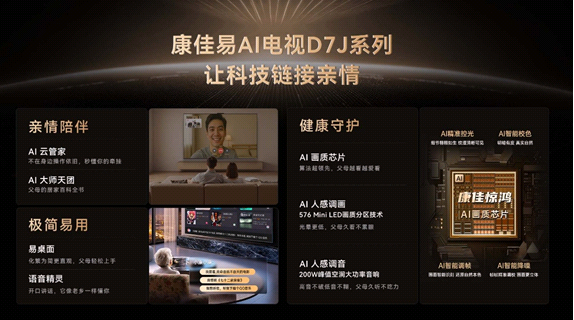 通過易AI系統(tǒng)的功能優(yōu)化,康佳易AI電視從操作交互、場(chǎng)景適配到情感連接多維度重構(gòu)電視使用體驗(yàn),既致力于解決傳統(tǒng)電視操作復(fù)雜、廣告干擾、智能交互程度不夠等痛點(diǎn),更試圖以技術(shù)創(chuàng)新喚醒電視在家庭生活中的情感價(jià)值,讓電視重新成為承載家庭陪伴與歡樂的核心載體,為電視行業(yè)挖掘銀發(fā)增量提供了切實(shí)可行的解決方案。