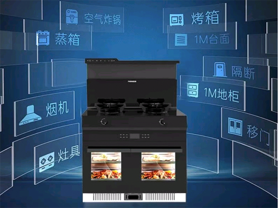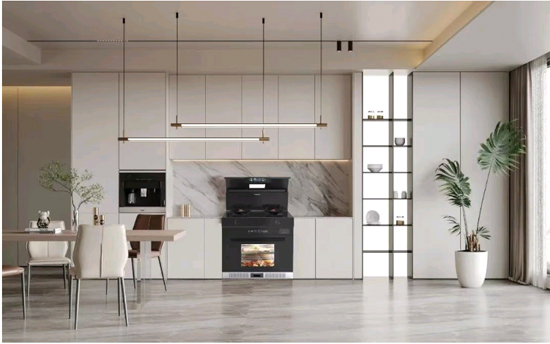 獨(dú)創(chuàng)“立體集成”設(shè)計(jì),將灶具、煙機(jī)、消毒柜、蒸烤箱等功能模塊高度整合,占地不足1平方米即可滿足全場(chǎng)景烹飪需求,大幅節(jié)省廚房空間,提升美觀度。