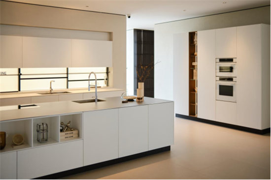 其打造的六大空間系統(tǒng)(中西廚、臥房、親水、客餐廳社交、墻護(hù)、戶外餐廚),既能滿足別墅業(yè)主的社交型廚房需求,也能為小戶型提供“12mm超薄柜體”的空間解決方案。