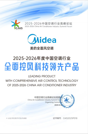 值得一提的是,美的今年推出的全面風(fēng)空調(diào)憑借顛覆性的外觀設(shè)計和卓越的控風(fēng)科技等創(chuàng)新突破,在“2025-2026中國空調(diào)行業(yè)高峰論壇”上榮獲“全面控風(fēng)科技領(lǐng)先產(chǎn)品”大獎。這一榮譽(yù)不僅體現(xiàn)了行業(yè)對美的空調(diào)技術(shù)實力的高度認(rèn)可,也充分彰顯了其在產(chǎn)品創(chuàng)新方面的領(lǐng)先優(yōu)勢。