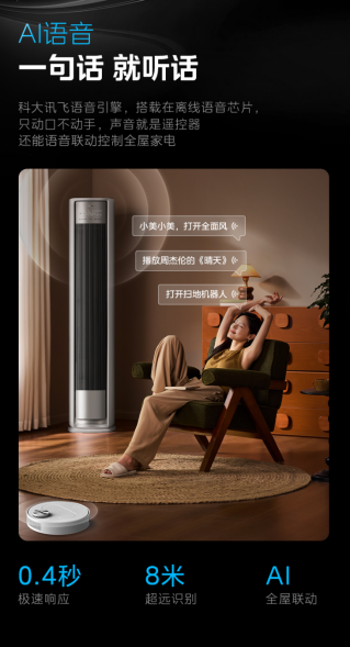 產(chǎn)品還支持AI語音智控,內(nèi)置第二代離線語音芯片及科大訊飛語音引擎,響應(yīng)速度僅0.4秒,用戶一句話即可操控全屋家電。同時,其APF值高達(dá)5.25,更搭載AI酷省電科技,兼顧節(jié)能與經(jīng)濟(jì)性。
