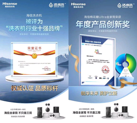 在IFA2025同期召開的第二十一屆(2025)中國(guó)家用電器創(chuàng)新成果發(fā)布盛典上,海信三筒洗衣機(jī)(海信棉花糖Ultra全家筒)獲得“年度產(chǎn)品創(chuàng)新獎(jiǎng)”,其對(duì)分區(qū)洗護(hù)邏輯的徹底重構(gòu),贏得了行業(yè)和市場(chǎng)的高度認(rèn)可。同時(shí)在2024-2025年度中國(guó)家用電器品牌評(píng)價(jià)活動(dòng)中,海信洗衣機(jī)被中國(guó)家電院評(píng)為“洗衣機(jī)行業(yè)十強(qiáng)品牌”。