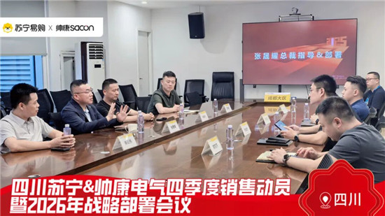 會(huì)議在雙方高層團(tuán)隊(duì)的共同參與下拉開(kāi)帷幕。帥康電氣總裁張晟耀、蘇寧易購(gòu)成都地區(qū)總經(jīng)理朱強(qiáng)發(fā)等領(lǐng)導(dǎo)出席會(huì)議。此次雙方互動(dòng),不僅深化了彼此互信,更明確表達(dá)了共同拓展川內(nèi)市場(chǎng)、提升品牌影響的戰(zhàn)略共識(shí),為后續(xù)合作奠定組織基礎(chǔ)。