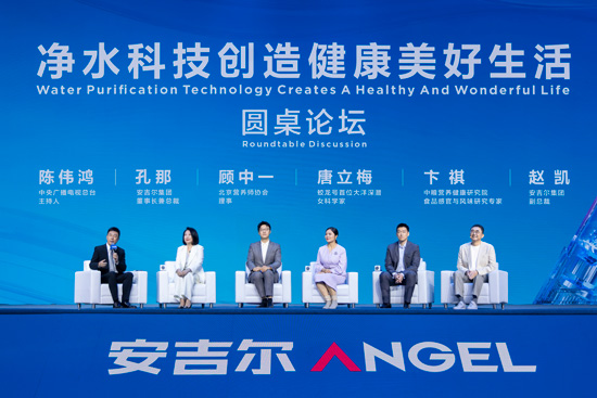 發(fā)布會上的圓桌論壇環(huán)節(jié),安吉爾集團董事長兼總裁孔那、副總裁趙凱與營養(yǎng)師顧中一、科學(xué)家唐立梅、中糧食品感官與風味研究專家卞祺和主持人陳偉鴻圍繞“凈水科技創(chuàng)造健康美好生活”展開深度對談。