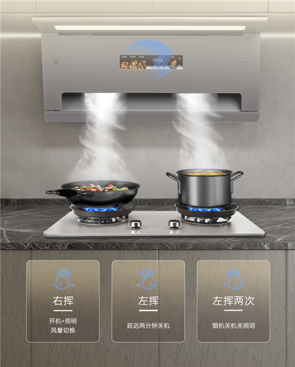 烹飪時(shí)雙手忙碌,操作卻依然可以優(yōu)雅從容。櫻花御風(fēng)吸油煙機(jī)SCR-Q660M內(nèi)置智能體感操控系統(tǒng),讓交互更純粹,只需輕輕揮手,即可快速完成吸油煙機(jī)的啟停調(diào)檔的操作,無需觸碰面板,即可讓整個(gè)烹飪節(jié)奏更加流暢,無接觸的智能生活體驗(yàn),也讓廚房空間更加整潔,排煙更高效。