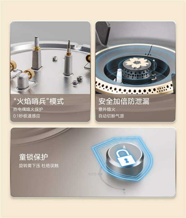 全方位的防護(hù)讓烹飪更安心,櫻花御風(fēng)燃?xì)庠頢860G配備熱電偶熄火保護(hù)、防泄漏系統(tǒng)及童鎖設(shè)計(jì)等多重安全防護(hù)系統(tǒng),為每一次下廚提供周全的守護(hù),讓每個(gè)家庭都能無(wú)憂(yōu)享受料理的樂(lè)趣。