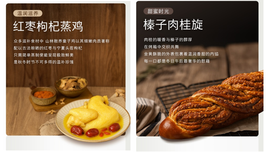 隨著冬季來臨,家居飲食更注重溫暖與營(yíng)養(yǎng)的平衡。博世御器Z6觸啟蒸烤一體機(jī)憑借精準(zhǔn)的溫控與多樣的烹飪模式,為用戶帶來兩道兼具風(fēng)味與溫度的冬季食譜,輕松實(shí)現(xiàn)從溫潤(rùn)滋補(bǔ)到甜蜜暖心的味覺體驗(yàn)。一道紅棗枸杞蒸雞選用肉質(zhì)細(xì)嫩的山林散養(yǎng)童子雞,搭配古法晾曬的紅棗與寧夏頭茬枸杞,通過博世蒸烤箱的“低氧鎖鮮蒸”功能,在雙重澎湃蒸汽中高效鎖住食材原味與營(yíng)養(yǎng)。無需復(fù)雜調(diào)味與長(zhǎng)時(shí)間看管,即可呈現(xiàn)肉質(zhì)滑嫩、湯汁清甜的蒸制效果,成為秋冬家庭餐桌上理想的溫補(bǔ)之選。而榛子肉桂旋肉桂的暖香與榛子的醇厚在博世烤箱中均勻受熱,充分融合。其精準(zhǔn)的3D熱風(fēng)烤功能使外皮金黃酥脆,內(nèi)餡柔軟香甜,每一口皆傳遞出冬日下午茶時(shí)光的溫馨氛圍。無論是家庭聚會(huì)還是個(gè)人享用,均為提升生活儀式感的暖心甜點(diǎn)。