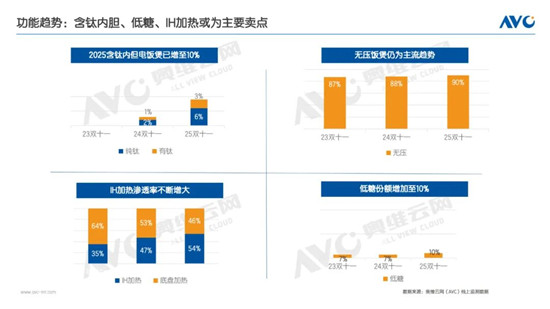 整體規(guī)模在結(jié)構(gòu)調(diào)整中邁向高質(zhì)量增長,消費升級驅(qū)動需求向優(yōu)而行。奧維云網(wǎng)(AVC)線上監(jiān)測數(shù)據(jù)顯示,2025年雙十一期間,電飯煲市場呈現(xiàn)出“量額齊降”但“均價上漲”的鮮明特點。零售額為8.8億元,同比下滑14.6%,零售量達261.4萬臺,同比大幅下滑24.1%。這背后主要受到兩大因素影響:一方面,產(chǎn)品與消費升級直接推動了均價上漲12.5%,達到337元,說明消費者更傾向于購買高端產(chǎn)品,導致銷量降幅大于銷售額;另一方面,作為生活剛需品,電飯煲的消費日益趨于常態(tài)化,消費者多秉持“即想即買”的原則,而非將需求積壓至大促節(jié)點集中釋放,從而稀釋了雙十一期間的購買力,共同導致整體市場的量額雙降。