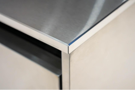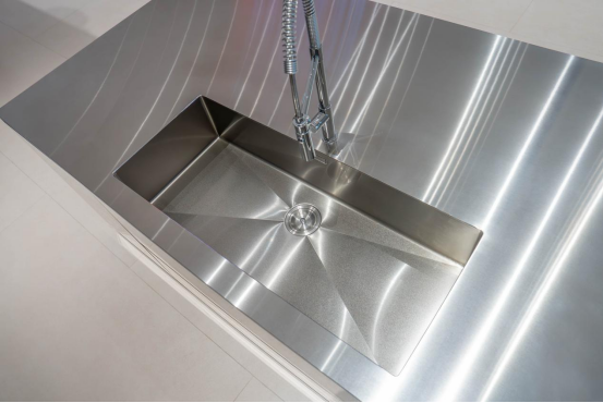 10mm實(shí)心鋼臺(tái)面與1000mm一體無(wú)縫焊接大單槽,從根本上解決了縫隙積垢、膠體老化脫落等痛點(diǎn)問(wèn)題,大幅簡(jiǎn)化了傳統(tǒng)廚房的繁復(fù)清潔流程,為廚房空間營(yíng)造出兼具實(shí)用性與美學(xué)價(jià)值的收尾效果,實(shí)現(xiàn)了功能性與儀式感的有機(jī)統(tǒng)一。
