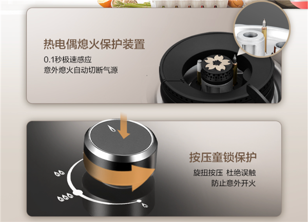 為生活提供周全的安心保障,櫻花燃?xì)庠頢507GA貼心設(shè)計(jì)按壓童鎖保護(hù)裝置,旋鈕先下壓再旋轉(zhuǎn)方能開(kāi)啟,有效防止兒童誤觸或意外開(kāi)火,從源頭上消除安全隱患。同時(shí),熱電偶熄火保護(hù)裝置能在0.1秒內(nèi)極速響應(yīng),一旦檢測(cè)到意外熄火會(huì)立即自動(dòng)切斷氣源,杜絕燃?xì)庑孤┑娘L(fēng)險(xiǎn),為家庭烹飪提供全天候的多重防護(hù)。