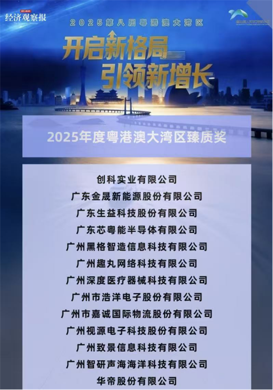 論壇同期,經(jīng)濟(jì)觀察報(bào)發(fā)布“2025年度粵港澳大灣區(qū)臻質(zhì)獎(jiǎng)”名單,華帝股份憑借其卓越表現(xiàn),成功摘得此項(xiàng)殊榮,成為廚電行業(yè)唯一獲獎(jiǎng)的企業(yè),也成為高質(zhì)量發(fā)展的典范代表。
