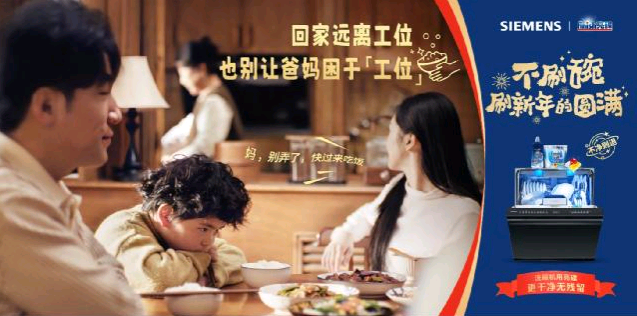 據(jù)中青報(bào)2025年調(diào)研顯示,59.1%的受訪者直言假期"既充實(shí)又透支",密集的餐后清潔、食材處理等家務(wù),正悄然擠壓著家人真正的相處時(shí)光。上一輩習(xí)慣用"多做一點(diǎn)"詮釋關(guān)愛(ài),新一代卻在思考:有沒(méi)有一種方式,能讓奉獻(xiàn)不必以犧牲陪伴為代價(jià)?這種未被言明的時(shí)代情緒,正催生著家電消費(fèi)的觀念革新。數(shù)據(jù)顯示,盡管中國(guó)洗碗機(jī)市場(chǎng)滲透率仍處低位,但春節(jié)前夕相關(guān)話題在社交媒體上討論火熱,折射出消費(fèi)者對(duì)"解放雙手"的迫切需求。西門(mén)子家電與亮碟聯(lián)合發(fā)起的2026春節(jié)特別企劃,正是對(duì)這一需求的深刻回應(yīng)——通過(guò)創(chuàng)意視頻勾勒出"不刷碗的團(tuán)圓圖景",以"不刷碗,刷新年的圓滿"為品牌主張,讓智能廚電成為傳遞孝心與關(guān)愛(ài)的新載體。在營(yíng)銷(xiāo)推廣層面,西門(mén)子洗碗機(jī)使用了聯(lián)合頭部媒體官宣視頻、知名媒體號(hào)深度解讀、戶(hù)外媒體助推、達(dá)人演繹激發(fā)更多討論的方式,向更多消費(fèi)者講好這個(gè)春節(jié)團(tuán)圓的故事。