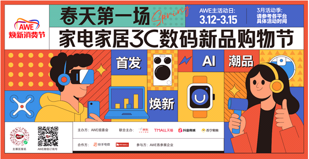 2026年3月12-15日,以“AI科技、慧享未來”為主題的2026年中國家電及消費電子博覽會(AWE2026)將以“一展雙區(qū)”的全新格局,在上海新國際博覽中心與上海東方樞紐國際商務(wù)合作區(qū)兩地同步舉行。作為國家擴大內(nèi)需戰(zhàn)略和消費品以舊換新政策的積極響應(yīng)者和堅定踐行者,AWE主辦方中國家用電器協(xié)會將深入貫徹落實黨的二十屆四中全會和中央經(jīng)濟工作會議精神,于AWE2026期間再度聯(lián)合京東、天貓、抖音商城、蘇寧易購、小紅書、快手等主流平臺,集中開展多場大力度促消費活動,推動家電煥新消費,助力行業(yè)實現(xiàn)“十五五”良好開局。