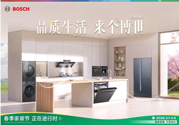 作為全球家電行業(yè)領導者之一,博西家電深耕中國市場三十余年,旗下博世家電與西門子家電已成為眾多家庭品質生活的選擇。3月1日至4月6日,兩大品牌聯(lián)合啟動2026春季家裝節(jié),以覆蓋全國的煥新活動和系統(tǒng)化的套系產(chǎn)品,回應消費者對“一次定型、一步到位”的家電升級需求。