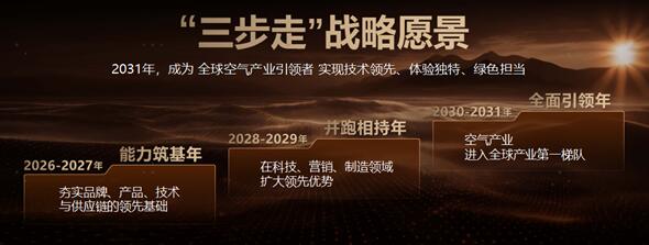 殷必彤在演講中提到,海信空氣產(chǎn)業(yè)已確立了“三步走”戰(zhàn)略愿景:錨定2031年成為全球空氣產(chǎn)業(yè)引領(lǐng)者的目標(biāo),分三個(gè)階段完成產(chǎn)業(yè)的全球化進(jìn)階。按照戰(zhàn)略規(guī)劃:2026-2027年,產(chǎn)業(yè)將聚焦能力筑基,夯實(shí)品牌、產(chǎn)品、技術(shù)與供應(yīng)鏈的領(lǐng)先基礎(chǔ);2028-2029年加速并跑相持,擴(kuò)大科技、營銷、制造領(lǐng)域優(yōu)勢(shì);2030-2031年實(shí)現(xiàn)全面引領(lǐng),推動(dòng)海信空氣產(chǎn)業(yè)邁入全球第一梯隊(duì),以技術(shù)領(lǐng)先、體驗(yàn)獨(dú)特、綠色擔(dān)當(dāng)重塑行業(yè)格局。
