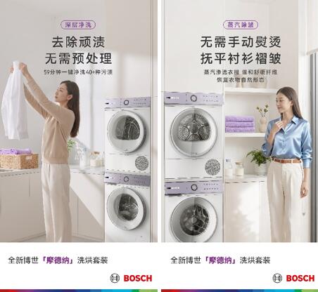 針對消費者洗護核心痛點,套裝打造深層凈洗與蒸汽除皺兩大創(chuàng)新功能,真正實現(xiàn)洗護高效又省心。深層凈洗由博世家電與碧浪聯(lián)合研發(fā),無需預處理,一鍵即可清除40+種頑固污漬,59分鐘快速完成清洗,40℃柔和水溫呵護嬌貴面料,搭配定制洗衣液與智能投放科技,清潔同時避免泡沫殘留。