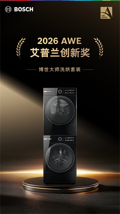 3月12日,2026年度中國家電及消費(fèi)電子博覽會AWE艾普蘭獎頒獎典禮在上海圓滿落下帷幕。經(jīng)過組委會專家小組嚴(yán)格的多輪嚴(yán)格選拔,博世大師套系洗烘套裝與博世V20 Pro煥彩版洗碗機(jī)皆榮獲艾普蘭創(chuàng)新獎。作為全球智慧生活領(lǐng)域的“奧斯卡”,艾普蘭獎是當(dāng)今家電與消費(fèi)電子領(lǐng)域具有公信力的產(chǎn)品評選表彰活動,旨在對年度行業(yè)創(chuàng)新成果進(jìn)行表彰。這兩項(xiàng)殊榮,不僅是對博世家電硬核實(shí)力的權(quán)威認(rèn)證,更是全新品牌宣言——“恒久品質(zhì),致用朝夕”的堅實(shí)底氣。