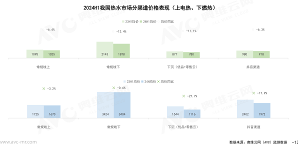 2024年之前,以換新為主的電熱水器市場(chǎng)更加側(cè)重于款式和參數(shù)的升級(jí),而燃?xì)鉄崴魇袌?chǎng)正處于增長(zhǎng)期,正在向高端和舒適化方向發(fā)展。但是進(jìn)入2024年,特別是二季度,一切向價(jià)格看齊。我們以下沉渠道為例,某些品牌12L燃?xì)鉄崴餍商拿貨價(jià)已經(jīng)低至480元。電熱水器同樣如此,線下市場(chǎng)1000元價(jià)格段以下電熱水器零售額占比從2023年上半年的9%上升到了2024年上半年的18%。