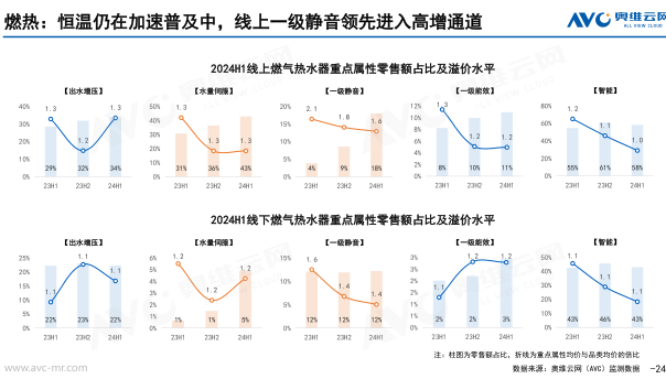 到那個(gè)談及熱水器行業(yè)可能存在哪些機(jī)會(huì)時(shí),很多人的第一反應(yīng)是“燃?xì)鉄崴鳌,一方面來自奧維云網(wǎng)(AVC)推總數(shù)據(jù)顯示,2024上半年中國(guó)熱水器市場(chǎng)電熱、燃熱結(jié)構(gòu)比例為58%、42%,相較2023年電熱向燃熱轉(zhuǎn)移了+0.8%,這一趨勢(shì)在未來較長(zhǎng)一段時(shí)間內(nèi)還將延續(xù)。另一方面,相對(duì)來說,燃?xì)鉄崴鳑]有電熱水器那么卷,雖然2024年上半年價(jià)格競(jìng)爭(zhēng)加劇,但是產(chǎn)品升級(jí)的趨勢(shì)不會(huì)變。