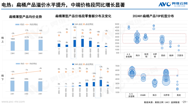 第一、最為明顯的特征就是高顏值和輕薄,從趨勢(shì)上來看,燃?xì)鉄崴鲗⒊靶《 钡姆较虬l(fā)展,比如萬家樂發(fā)布的A2系列小體積燃?xì)鉄崴,老板電器攜手中國(guó)美術(shù)學(xué)院推出的藝術(shù)家款燃?xì)鉄崴鳌k姛崴髯叩膭t是“薄而美”路線,典型代表就是扁桶熱水器,奧維云網(wǎng)(AVC)監(jiān)測(cè)數(shù)據(jù)顯示,2024上半年扁桶電熱水器線上零售額占比為23%,同比為增長(zhǎng)5%。